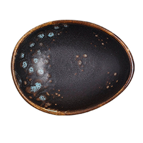 Modulus Sauce Dish, 3-1/8" x 2-7/16" x 3/4", oblong, hand painted, fully glazed foot, scratch resistant, aluminum oxide reinforced body, porcelain, matte black/sky blue reactive glaze, Premium, London Moonstone Collection