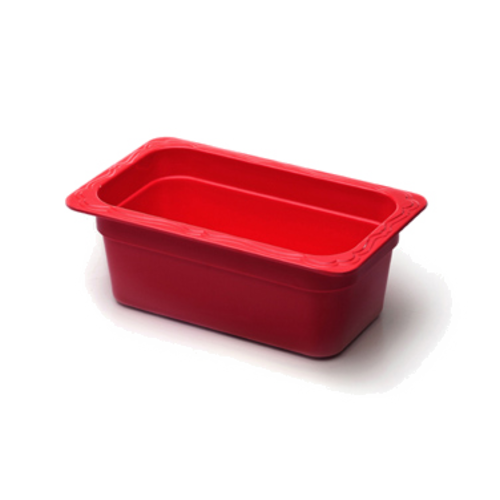 Food Pan, 1/4 size, 2.22 qt., 10"L x 6"W x 4"H, holds temperature to 182°, red, break, chip, stain & scratch resistant, dishwasher safe, BPA free, melamine