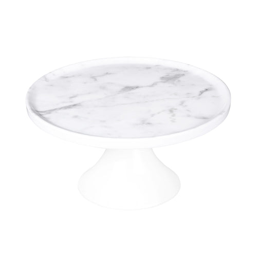 Melamine Plate Stand, 8" dia. x 4"H, round, two-piece, screw-on top, break, chip, stain & scratch resistant, dishwasher safe, BPA free, faux carrara marble look, Sierra (Kit Consists of M8RP-C and M34P-W)