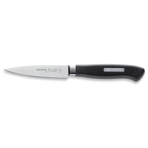 ActiveCut Paring Knife, 3-1/2" blade, spear point, half bolster, forged, stainless steel, black plastic handle, NSF