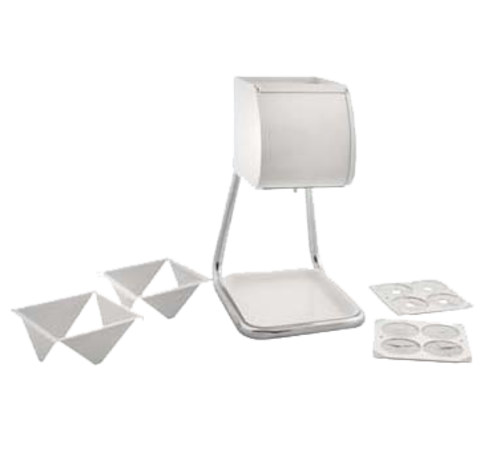 Cone Dispenser, 15-1/2" H x 9"W x 11"D, boxed, countertop or wall mounted, includes crump tray, interchangeable baffle plates & collars, powder coating, steel, white