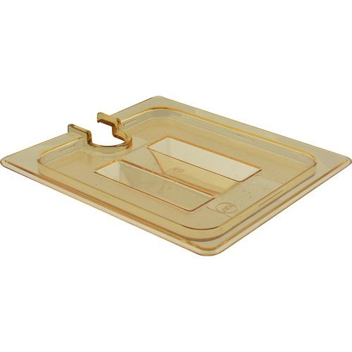 Carlisle® Food Pan Lid, 1/6 size, with handle, notched, amber polycarbonate