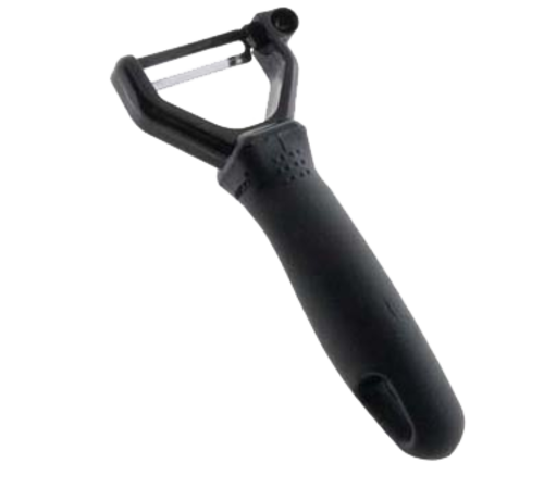 Peeler, 6-1/4", v-shaped, stainless steel blade, black santoprene handle