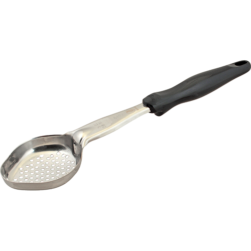 Portion Control Spoon, oval, 3 oz, perforated, stainless steel, black handle