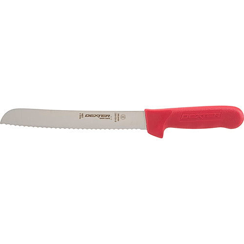 Sani-Safe® Scalloped Bread Knife by Dexter®, 8" blade, high carbon steel, red handle