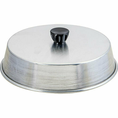 Basting Cover, 9" OD, round, black plastic knob, aluminum