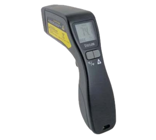 Thermometer, infrared, 1" square LCD display, -49° to 752° F (-45° to 400° C) switchable temperature range, (2) AAA batteries included, carrying case, display backlight feature, laser sighting, non-contact measurement, black, high impact plastic housing
