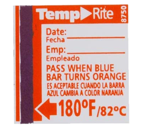 Taylor® Dishwasher Temperature Label, target temperature of 180°F, the label indicates when dishware is properly sanitized by changing color, single use (24 each per pack)