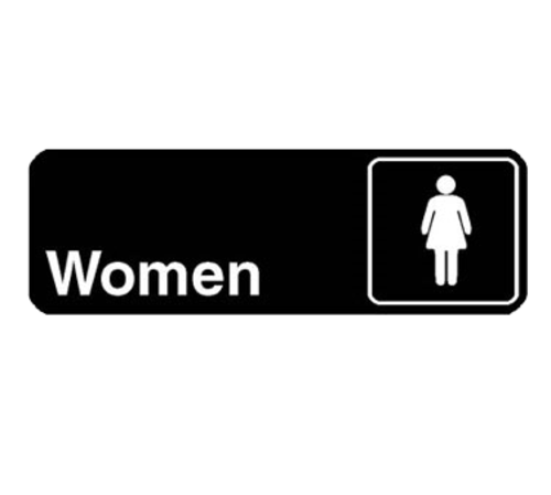 Sign, "Women", 3" x 9", black with white letters, plastic with adhesive back