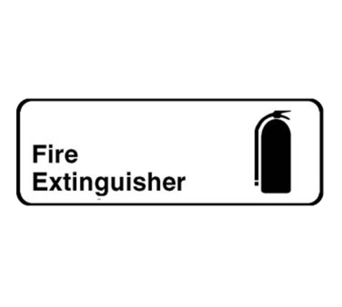 Sign, "Fire Extinguisher", 3" x 9", white with red letters, plastic with adhesive back