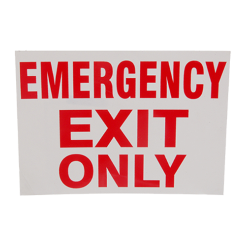 Sign, "Emergency Exit Only", 7" x 10", white with red letters, vinyl with adhesive backing