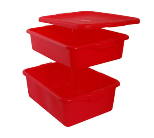 Food Storage Box, with colander & lid, 20" x 15" x 7" deep, polyethylene, red, dishwasher & freezer safe, NSF, made in USA