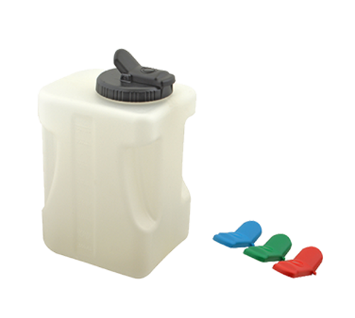 Drink Container, with lid, 16 oz. capacity, 6-5/8"L x 8-5/8" H x 5-1/2"W, US & metric measurements printed on side panels, polypropylene, clear, includes: (3) extra lid caps-blue, red, green, dishwasher safe, NSF
