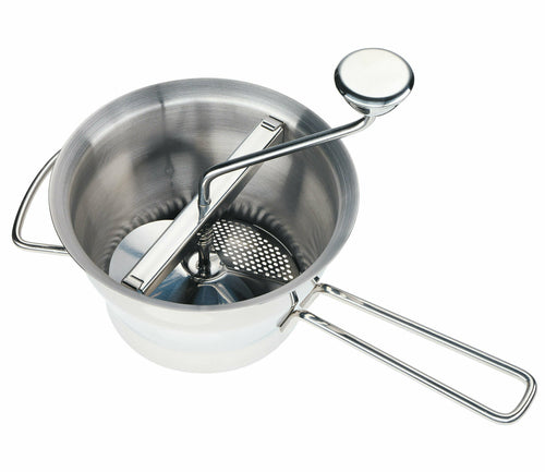 Food Mill, 8", with 4 discs, (1) each: super fine 0.05", fine 0.09", medium 0.11", & coarse 0.2", hand crank, perforated bottom, dishwasher safe, 18/10 stainless steel, Küchenprofi