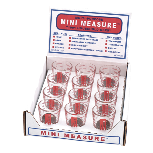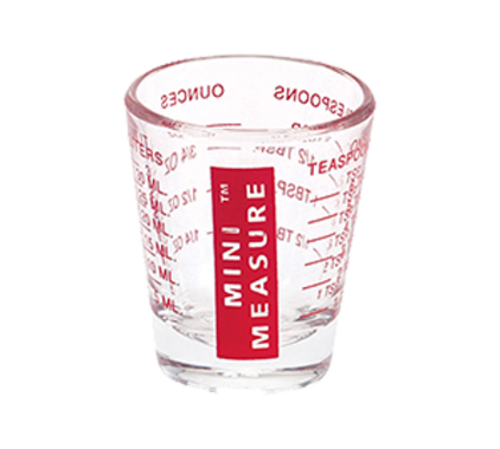Kolder Mini Measure, 2" x 2" x 2-1/2", capacity: 1 oz., 2 tbsp, 6 tsp., glass, red (12 each total per display/case)