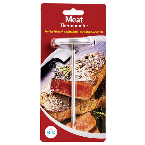Meat Thermometer, 2-1/2" dial display, analog, 120°F to 220°F temperature range, movable red indicator, oven & dishwasher safe, stainless steel, NSF