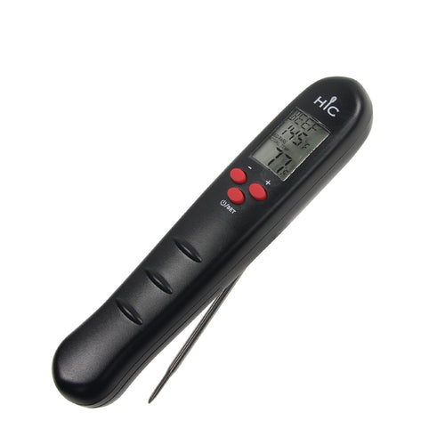 HIC Thermometer, foldable, LCD display, digital, 32°F to 392°F temperature range, auto-off, stainless steel stem, plastic housing