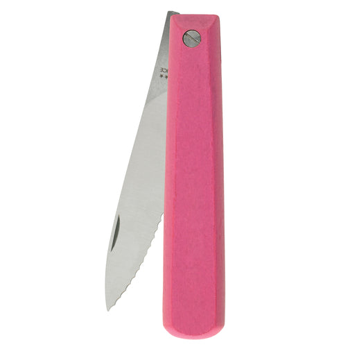 HIC Paring Knife, 3-1/4", folding, serrated edge, carbon steel blade, wood handle, pink