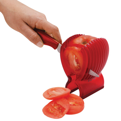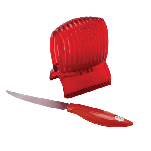 Joie Tomato Slicer & Knife Set, includes (1) tomato holder with slots for slicing (can be used with potatoes, onions & other vegetables) & (1) tomato knife