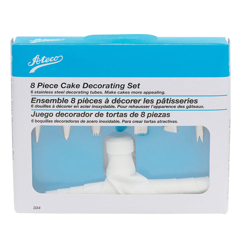 Ateco Pastry Decorating Set, includes: (1) coupling, (1) 10" flex pastry bag, (6) assorted decorating tubes