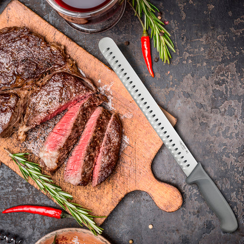 Cutlery-Pro® Roast Slicer, 12", granton, grey polypropylene ergonomic handle, stainless steel blade, dishwasher safe, NSF (carded)