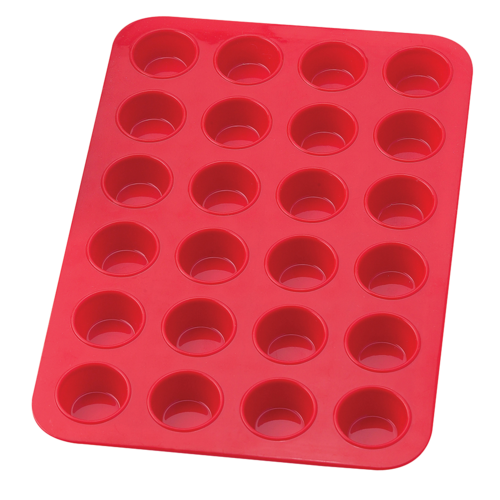 Mrs. Anderson's Baking® Mini Muffin Pan, 24 cup, 13-1/2" x 9-1/4" x 3/4", dishwasher safe, heat resistant to 500°F, meets FDA & Euro standards, 100% silicone, red