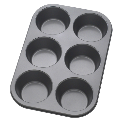 HIC Muffin Pan, 6 Cup, 13" x 8-3/4", carbon steel with non-stick coating, PFOA free
