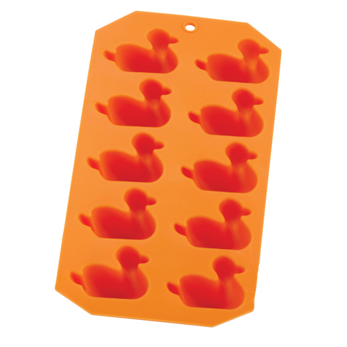 HIC Ice Tray & Baking Mold, flexible silicone, duck shape, safe for freezer, oven to 450°F