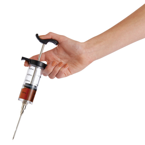 HIC Flavor Injector, 1.5 oz. capacity, graduated markings in ml and oz., includes (1) 18/8 stainless steel injector needle, polycarbonate tube, clear