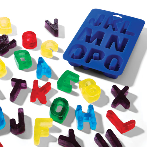 HIC Letters Ice Tray/Mold, 7" x 4-1/2", makes (26) letter shaped cubes, freezer/microwave/dishwasher safe, heat safe up to 500°F, silicone, assorted colors (green, blue, red) (3 each per set)