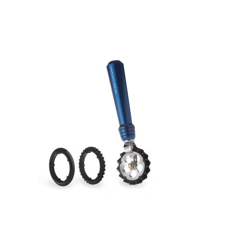 Marcato Atlas Pasta Wheel, interchangeable wheels, (3) edge styles: flat, large fluted, small fluted, blue