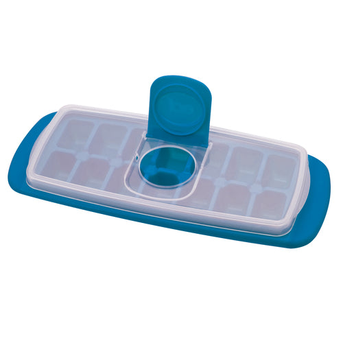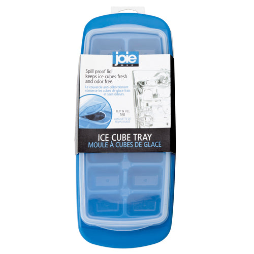 Joie Ice Cube Tray, includes lid with flip and fill tab, plastic, blue (carded)