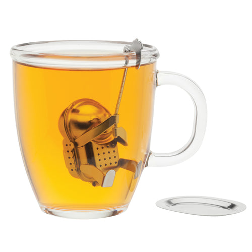 HIC Rock Climber Tea Infuser, 3-1/2" x 2-1/4", includes drip tray, stainless steel