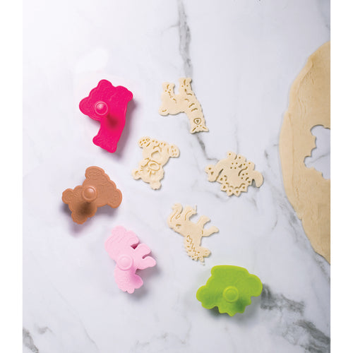 Mrs. Anderson's Baking® Animal Cookie Cutter Set, 4-piece, includes (1) each bear (2-1/2" x 2-1/4"), unicorn (2" x 2"), dinosaur (2-1/4" x 2-1/4"), & llama (2-3/4" x 2-1/4"), plastic, assorted colors, BPA free
