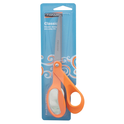Fiskars™ Shears, 8", right-handed, stainless steel blades, orange handles (carded)