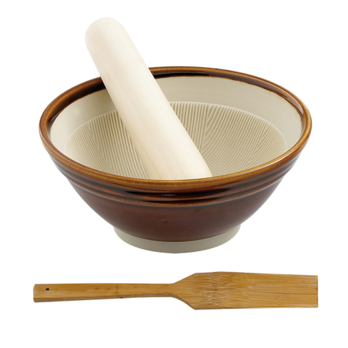 Helen's Asian Kitchen® Suribachi Mortar & Pestle Set, 5-1/2", bamboo brush, ceramic