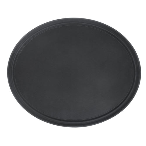 Serving Tray, 28-1/2" x 23-1/4" x 1-1/4"H, large, oval, heavy-duty, non-skid, textured rubber surface, polypropylene, black