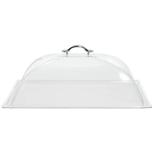 Dome Cover, for full-size PanAramics® Pan, 20" x 12" x 6"H, end cut-out, with stainless steel handle, heat-resistant up to 212°F, dishwasher safe, polycarbonate, clear