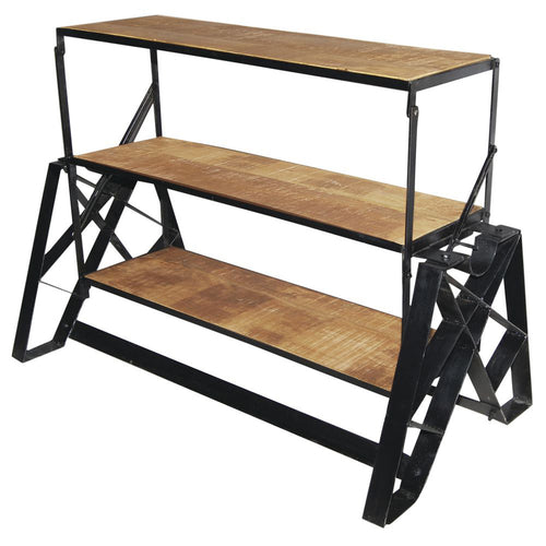 Convertible Shelf Display, 3-in-1, 44" x 24" x 31"H, rectangular, convertible to 3 positions, cast iron frame, mango wood shelves