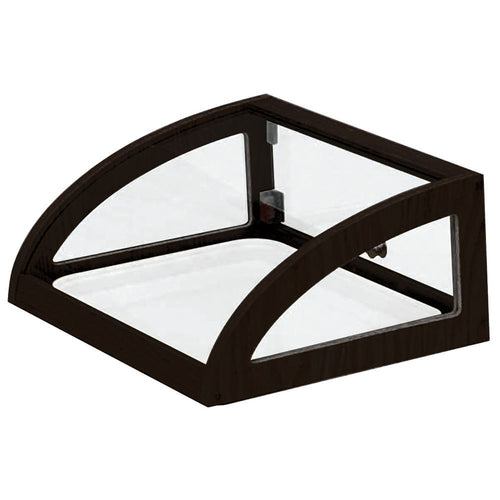 Bakery Display Case, full-service, 20" x 15" x 8"H, rectangular, countertop, curved, holds (1) 13" x 18" tray, single rear door, bottomless design, clear tempered glass with brass corners, bamboo wood trim with black finish