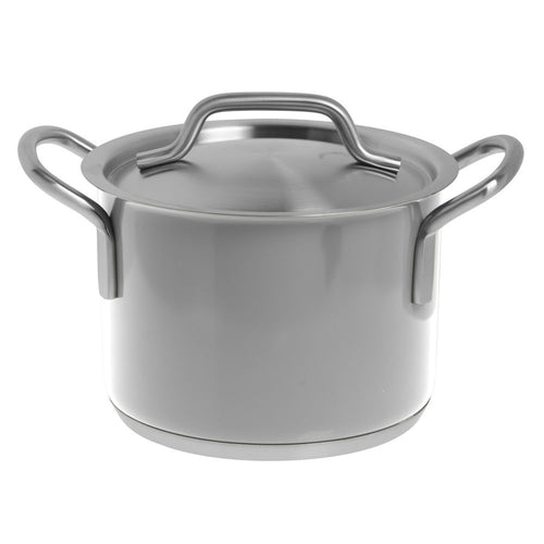 Colorscape Sauce Pot, 3-3/10 liter, 7-2/25" dia. x 5-7/64"H, round, with lid, induction ready, electric top/gas top/oven safe, riveted handles, single-ply, 18/8 stainless steel, satin finish, NSF