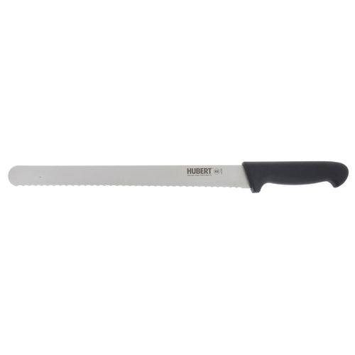 Slicer Knife, 12" blade, serrated, stamped, high-carbon, stain-resistant, German steel, black ergonomic Santoprene® handle, with SteriShield™ antimicrobial protection, NSF