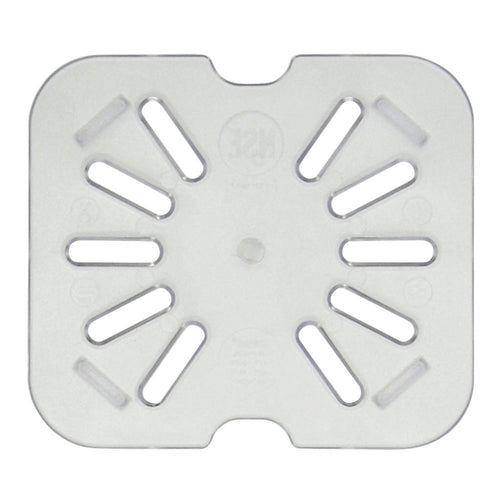 Drain Shelf, 1/6-size, for Cold Food Pan, with side notches, temperature range: -40° to 210°F, dishwasher safe, polycarbonate, clear, NSF