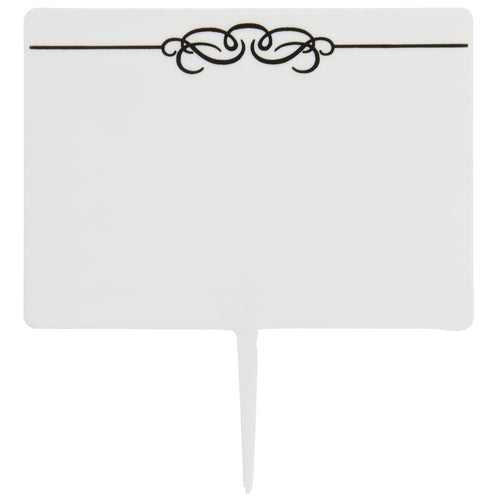 Tag, 3-1/2" x 2-1/2"H, rectangular, spear style, write-on/wipe-off, heat resistant up to 275°F, plastic, black scroll imprinted, white background