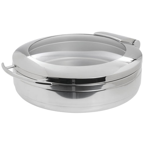 Induction Chafer, 6-3/10 qt., 17-3/10" x 21-1/4" x 6-3/10"H, round, with food pan, cover with glass window, stainless steel, mirror finish
