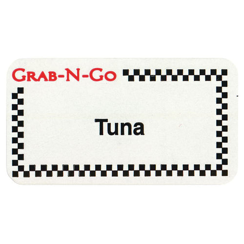 Grab-N-Go Food Label, "Tuna", 1-3/4" x 7/8", rectangular, paper, red/black imprinted, checkered border, white background (1000 each per roll)