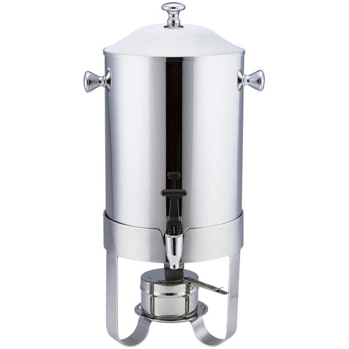 Coffee Urn, 1-4/5 gallon, 11-1/4" x 8-5/8" x 22"H, round, single-wall, with side knobs, built-in fuel holder (canned heat not included), stainless steel, polished finish