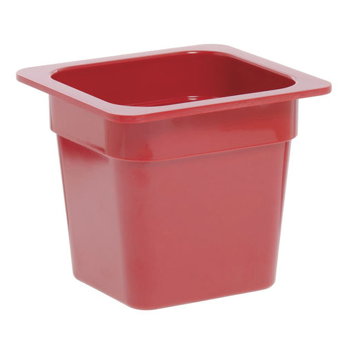 Cold Food Pan, 1/6-size, 6" deep, fade/chip/scratch/break-resistant, dishwasher safe, melamine, red, NSF
