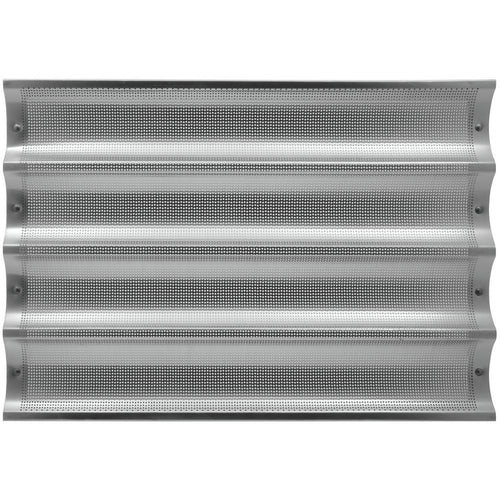 Baguette/French Bread Pan, holds (4) long rolls, 26" x 18" x 1"H overall, mould size: 3-3/4" x 26", perforated sides, 3003 aluminum