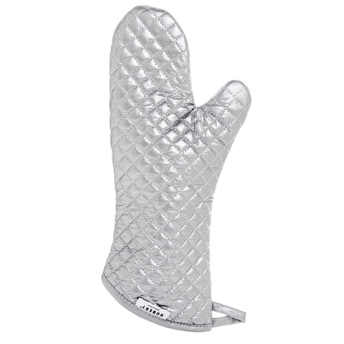 Oven & Freezer Mitt, 17"L, ambidextrous, non-stick coated exterior, heat resistant up to 400°F, hanging loop, cotton outer shell, cotton/polyester/viscose blend filling, silver